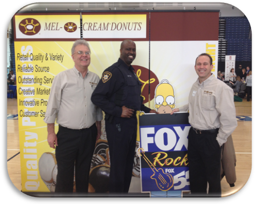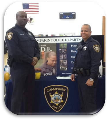 Last week, Champaign Police officers Jonathan Westfield, Andre Davis, and Jeffrey Pickett attended two internship and career fairs at Eastern Illinois University and the University of Illinois at Springfield (UIS). At the UIS fair, Officer Westfield took the time to visit with Homer Simpson and the Mel-O-Cream team.
