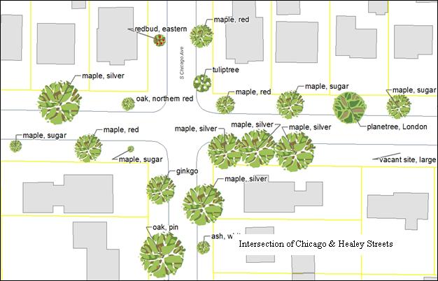 A project to inventory all trees within the City of Champaign Street rights-of-way was completed this past January. Completion of this project gives the City a valuable digital inventory in GIS format. Public Works staff will now be able to utilize the tree layer in the Work Order / Asset Management system Cityworks. This will allow staff to create service requests and work orders associated with individual trees or groups of trees. Staff time devoted to tree care will be logged in the system. Spatial data analysis of this layer will now be possible allowing trends to be identified and appropriate response plans developed with greater precision. The tree layer will be viewable in the City’s interactive web map soon. This project has given us a better understanding of a vital living asset that contributes to the health and livability of our City.