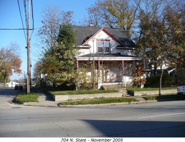 On August 1, 2013, a notice was issued to the owner of 704 N. State St., informing them that the property was determined to be a Vacant Nuisance Residential Building. The notice informed the owner of the requirement to register the property with a deadline of August 19, 2013. Because the deadline was missed, late fees accumulated and a lien was placed on the property for $8,250. The Neighborhood Code Compliance Division continued with nuisance abatements on the property until July 2015. The owner completed payment of the outstanding liens on the property and later sold the property to a new owner. Since being sold, the new owner has made several exterior improvements to the property including removing and repairing old siding, window replacement, and roof replacement.