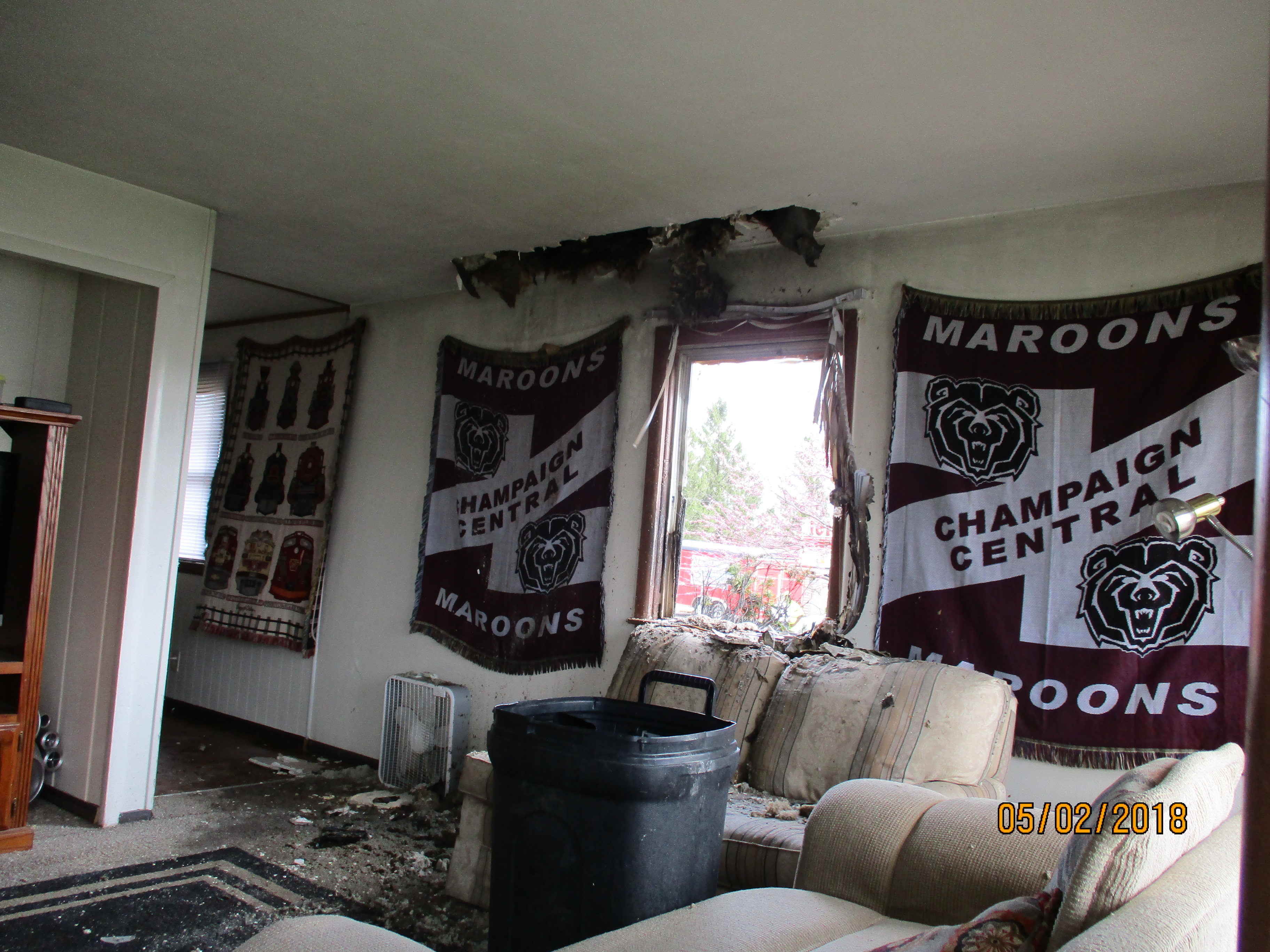 A second residential fire started around 3 p.m. on Wednesday May 2 at 1302 N. Mattis. The property was occupied by a single individual who was not home at the time of the fire. Damage was isolated to the living room area, as Champaign Fire responded quickly and moved to control the fire before it got out of control. Flames were just entering the attic, which would have caused the fire to spread quickly.