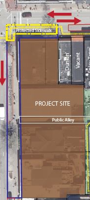 To accommodate construction staging, the sidewalk and loading zones adjacent to the building footprint on Sixth Street will be closed for the duration of the project. Eastbound traffic on Green Street will be shifted to the center lane to accommodate pedestrian traffic and allow Green Street sidewalks to remain open for the duration of the project. The westbound lane will be unaffected by the project. Left turns onto Sixth Street for westbound Green St traffic will be prohibited.
