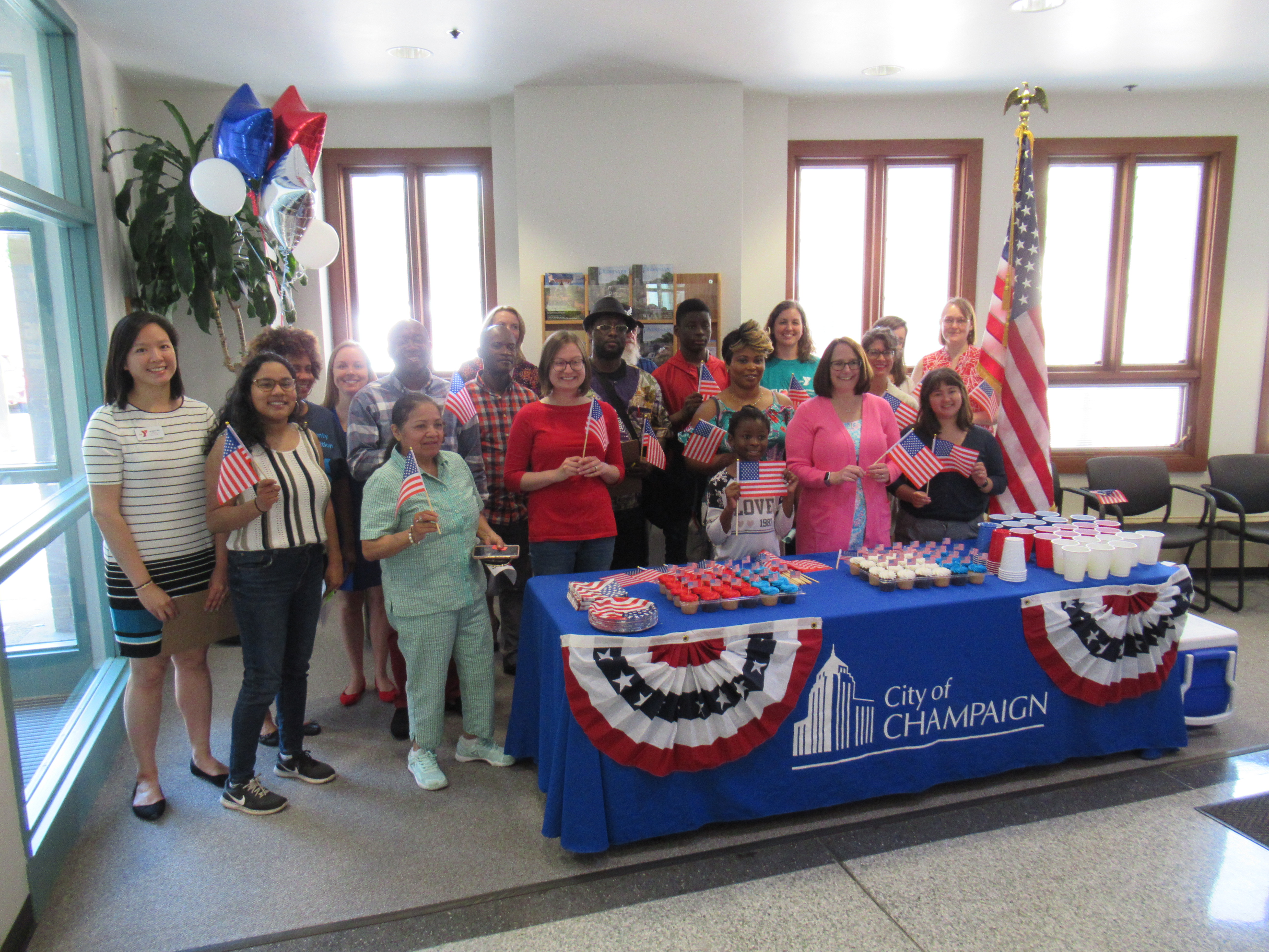 The Office of Equity, Community and Human Rights (ECHO) & the University YMCA New American Welcome Center co-hosted the National Flag Day & Citizenship Fair on June 14. Mayor Feinen provided a welcome speech to kick off the celebration. This event was free, family-friendly, and open to the public inside the atrium of the Champaign City Building. Champaign, Chicago, and Skokie are the only three cities in Illinois that are Cities for Citizenship!