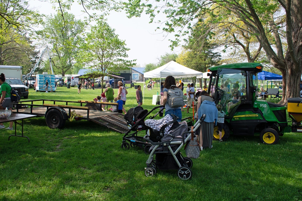 On May 11, 2022, the City’s Police, Fire, and Public Works Departments participated in the Champaign Park District’s Touch-A-Truck event at Centennial Park. The four-hour event gave kids and parents an opportunity to get up close and personal with several unique vehicles from the City’s fleet, including a squad car, SWAT truck, crime scene van, ladder truck, dump truck, and even a John Deere tractor.