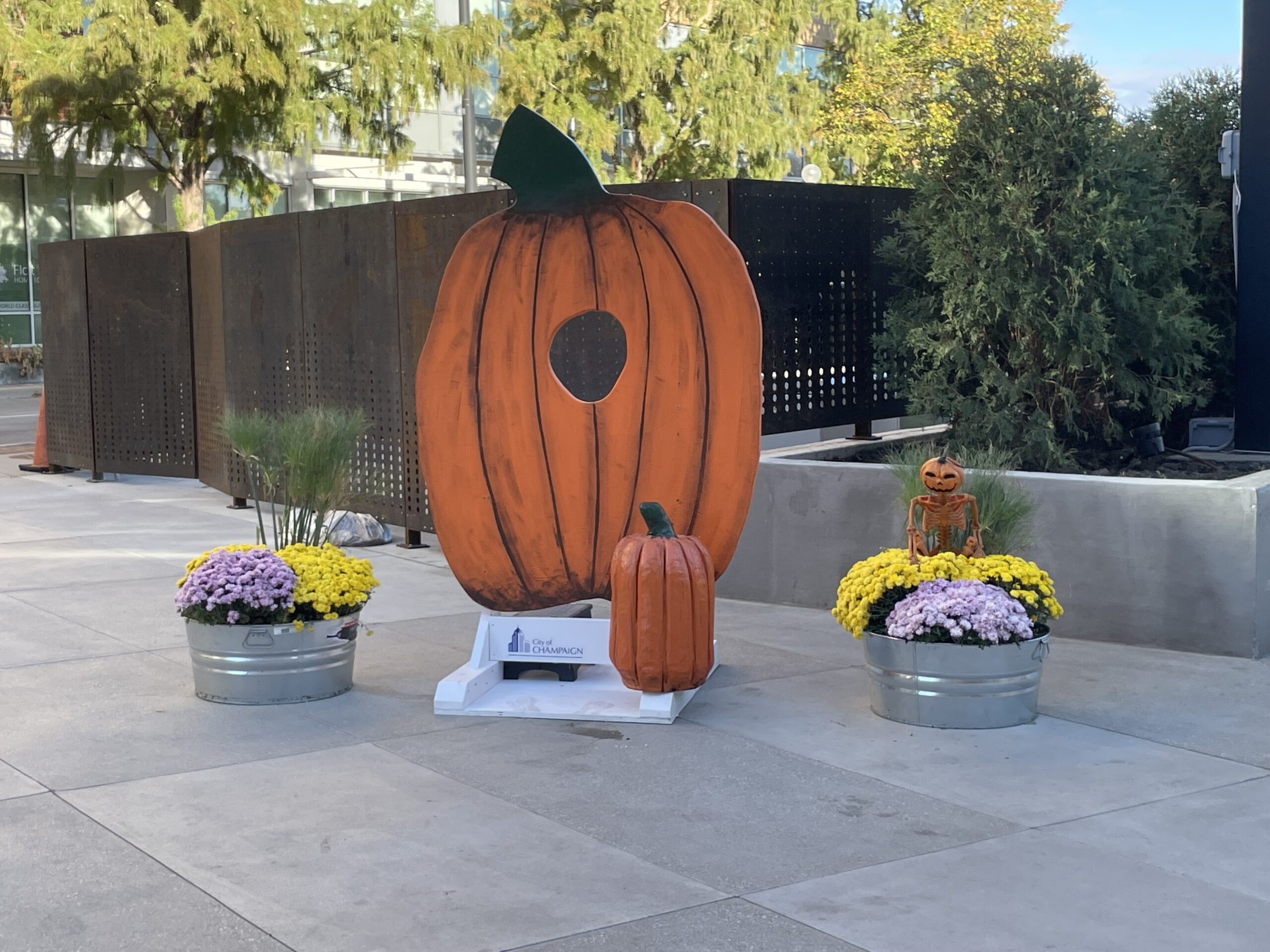 The Public Works Forestry Section teamed up with a Project Specialist II in Planning and Development during the Farmer’s Market at the Plaza on Main and Neil to create a festive fall display.